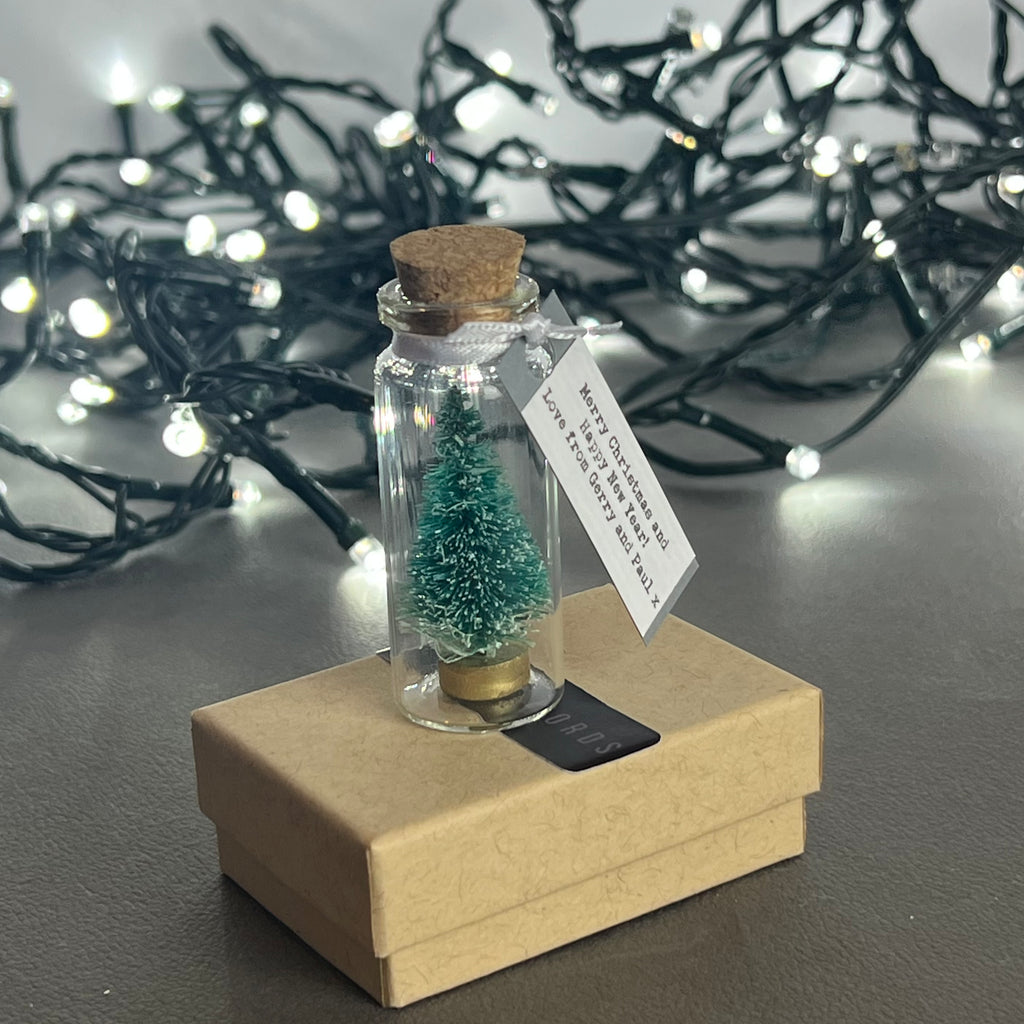 This little Christmas tree in a bottle comes to you with a personalised tag making it a lovely alternative to a Christmas card, an excellent stocking filler or a beautiful little 'thinking of you at Christmas' letterbox gift, it's also a great Secret Santa gift.
